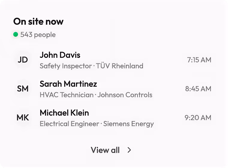 Start by eliminating operational blind spots. We enable you to instantly answer "Who is on-site?" to manage risk without the guesswork.